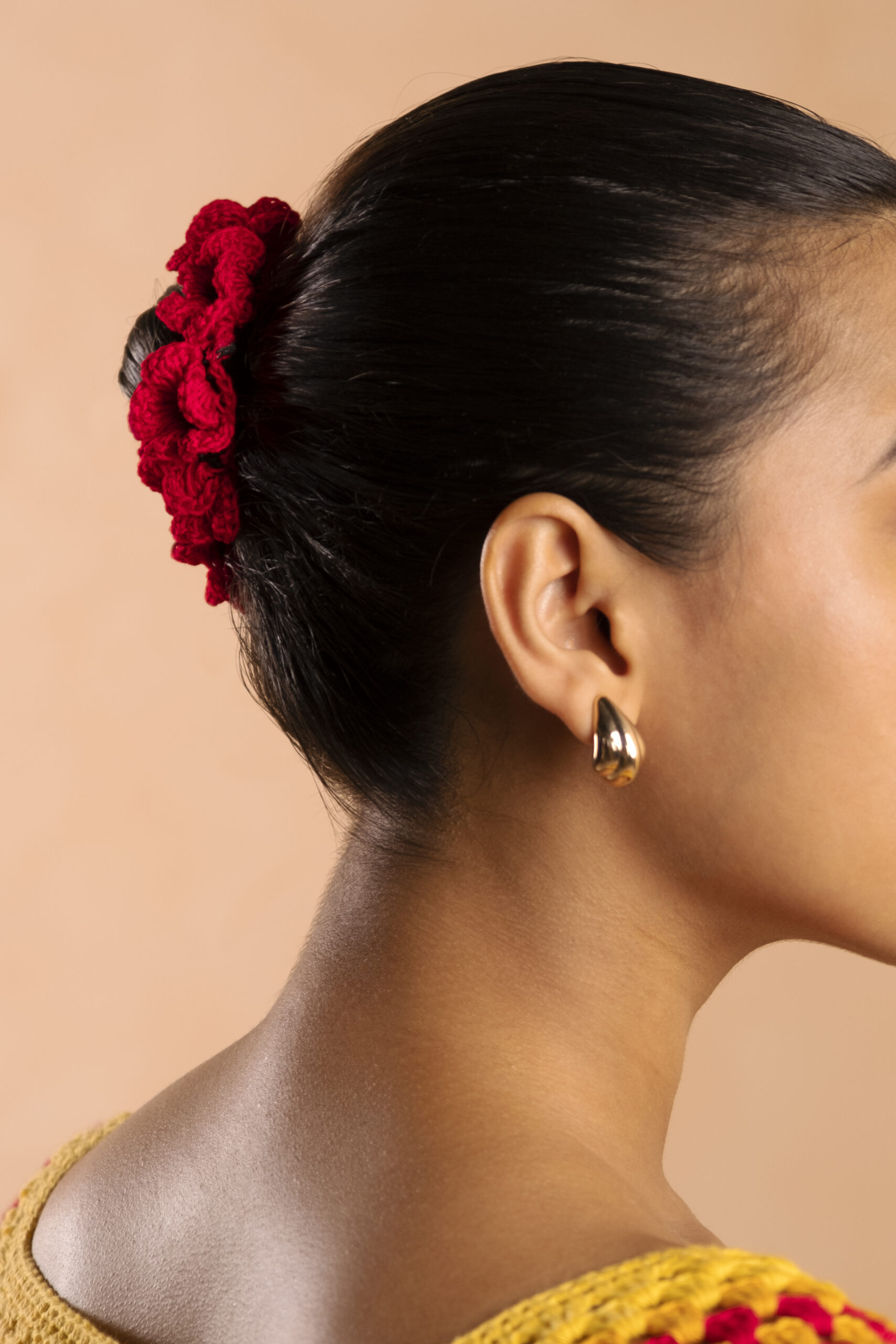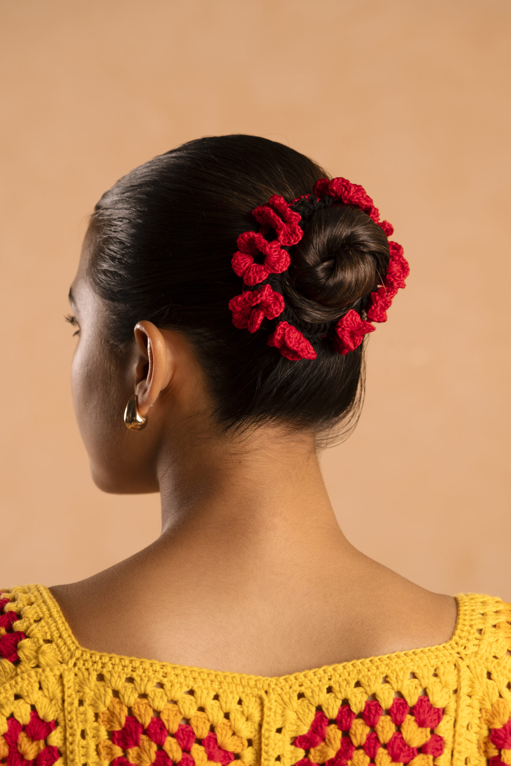Whimsical meets elegance with the Rosita Mini Bow Bun Scrunchie. Featuring a full circle of delicate hand-crocheted mini bows, this statement piece is designed to wrap perfectly around buns or ponytails for a unique and feminine touch. A celebration of craft and cuteness, ideal for both everyday and special occasions.