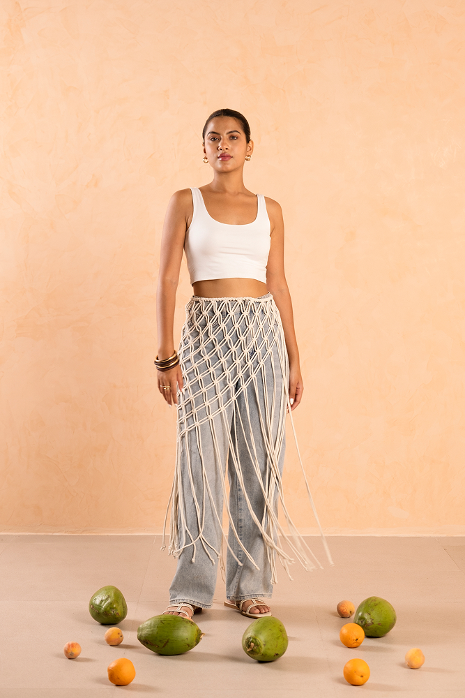 Unleash your inner beach goddess with our handcrafted macramé wrap skirt. Featuring an intricate knotted diamond lattice pattern, this skirt is designed to elevate any swimwear or bodycon outfit. With its free-flowing fringe and open-work design, it moves beautifully with every step, creating a dramatic boho statement.